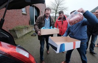 Dozen met rollades werden donderdag voor de actie 'Hart onder de riem' voor varkenshouders afgeleverd bij voorzitter Mark Ormel van LTO Noord Oost Achterhoek.