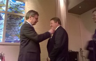 Jaap Haanstra is dinsdagavond door burgemeester Aucke van der Werff van gemeente Noordoostpolder benoemd tot Ridder in de Orde van Oranje Nassau.