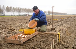 In de showtuin van Stichting Kleurrijk Flevoland in de Noordoostpolder (tussen Creil en Rutten) werd afgelopen week gewerkt aan het inplanten van zo'n tweeduizend soorten tulpen.