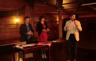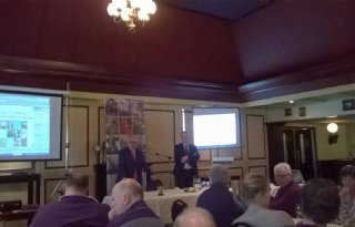 '100 jaar Zuiderzeewet, ondernemen onder zeeniveau'. Ton Leijten, Rob ter Haar en Marc Calon keken terug en vooruit in Flevoland, naar de historie en naar kansen voor boeren en tuinders, gisteren op de Avond van LTO Noord Flevoland.