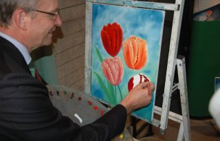 Henk Kamp, minister van Economische Zaken, heeft vanmiddag in Creil het Tulpenfestival 2013 geopend. Hij deed dit door mee te schilderen aan een tulpenschilderij, dat hij aansluitend signeerde.