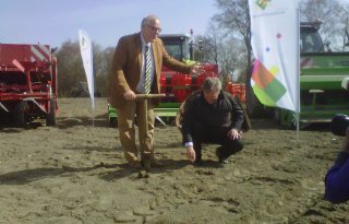Burgemeester Aucke van der Werff van gemeente Noordoostpolder pootte vanmorgen de eerste aardappelen van het ras Innovator voor het evenement Potato Europe 2013.