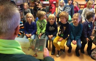 Albert Dankelman, voorzitter van LTO Noord Ommen, heeft vanochtend op basisschool De Dennenkamp in Ommen voorgelezen uit 'Boer Bas gaat naar zee'.