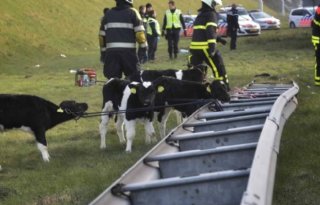 Een veetransportwagen met driehonderd kalveren is donderdagmiddag gekanteld op de A16 bij Breda. 108 kalveren zouden het ongeluk niet hebben overleefd.