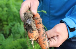 Ondanks het droge groeiseizoen zijn er dit jaar op peenpercelen relatief weinig aantastingen te vinden van wollige wortelluizen.
