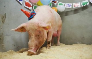 Een verrassend feestje bij de familie Holleman in het Gelderse Babberich. De zeug met nummer 586 werd tien jaar. Reden om haar in het zonnetje te zetten met slingers en taart van Agruniek Rijnvallei.