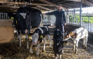 Bij Burgerboerderij De Patrijs in het Gelderse Lochem begon vorige week een project met het houden van kalveren bij een pleegkoe. 'De koe likt de kalveren vaak en veel. Die enorme interactie tussen koe en kalveren valt op', merkt Luuk de Gooijer op.