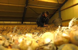 Akkerbouwer Piet-Jan van der Eijk uit Dronten won afgelopen twee jaar de verkiezing van de mooiste bewaarui. Dit jaar doet hij opnieuw mee en ging hij in de bewaarloods op zoek naar de mooiste uien van het ras Hyfive.