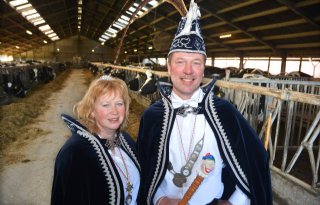 Het is carnaval in de stal bij Marcel van Munsteren en Sabina van Doorn in Cuijk. Het feest gaat dit jaar niet door, maar om het toch nog een beetje te kunnen vieren, zijn de koeien en de stal versierd.