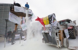 Europese melkveehouders hebben maandagmiddag geprotesteerd tegen een nieuwe Europese regulering van de melksector.