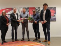 02-02-2019 - Peter van der Wardt, wethouder gemeente Oude IJsselstreek, reikte maandag bij Kramp in Varsseveld het bordje ‘Unieke Achterhoekers aan het werk’ uit aan logistiek manager Frank Dijkstra.