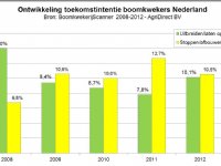 11-12-2012 - Het percentage boomkwekers met uitbreidingsplannen is voor het eerst in vier jaar gestegen. Tegelijkertijd is het aandeel 'stoppers' in de boomkwekerijsector gedaald.