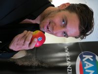21-10-2013 - Weerman Piet Paulusma gaf gisteravond tijdens zijn weerbericht het startsein voor het nieuwe Kanzi-seizoen. Vanaf vandaag ligt de Kanzi-appel weer in de supermarkten.