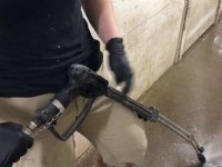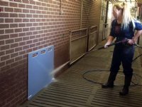 Prijs voor klem die werken met hogedrukspuit verlicht in stal