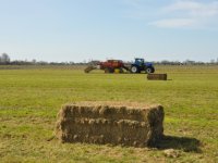 28-03-2012 - Loonbedrijf Oudwoude heeft maandag bij een melkveehouder in het Friese Warfstermolen de eerste balen geperst. Het ging om 7 hectare aan de Foijingaweg bij Kollumerpomp.