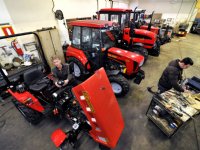 07-12-2011 - Knalrode trekkers met gele bloemstukken. Importeur Sjoerd Minnema in Joure, van het Wit-Russische trekkermerk Belarus (dat betekent 'Mooi Rusland') ziet het helemaal voor zich op de beurs...