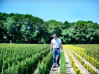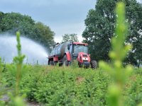 11-07-2018 - 'Als we niet beregenen, gaan de kerstbomen dood', geeft medewerker Johan Pannekoek van De Buurte Kwekerij uit Oene aan. Hij houdt daarom met een giertank een perceel kerstbomen nat.