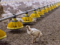 Kip krijgt insecten voorgeschoteld in driesterrenpluimveestal