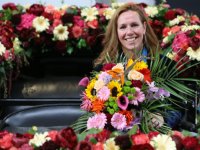 15-05-2014 - Tot haar grote verrassing werd Hanneke Sanders uit Soest vanmorgen feestelijk verwelkomd als vijftigduizendste bezoeker van de wereldexpo Floraliën in Den Bosch.