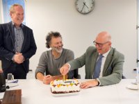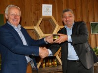 25-05-2016 - Toon van den Oord had zijn handen geduldig in zijn zakken gehouden. Totdat hij maandag de eerste pot van zijn biologisch geproduceerde honing overhandigde aan ZLTO-voorzitter Hans Huijbers....