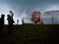 02-06-2012 - Bloemenbureau Holland draaide donderdag proef met de Lelie-Bel in de Eemshaven. 's Avonds laat maakte het promotiebureau foto's en filmpjes van de 6 meter grote transparante bel.