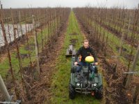 06-02-2019 - Medewerker Dirk Warmerdam van boomkwekerij Fleuren reed deze week op een Quad met daarachter een bodemscanner door de boomgaard van Toon Vernooij in het Utrechtse Cothen.