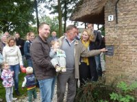 01-10-2014 - De Utrechtse gedeputeerde Mariëtte Pennarts heeft een gevelsteen met de inscriptie 'Boerderij van het Jaar 2014' in de muur van boerderij De Engh in Driebergen gemetseld.