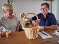 24-07-2020 - Hans Schoones uit Schijndel, vicevoorzitter van politievakbond ANPV, ontving vrijdagmiddag uit handen van ZLTO-bestuurder Jeannette van de Ven een pakket vol met boerenstreekproducten. Het...