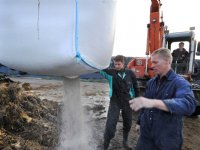 14-03-2015 - In het kader van het project 'Vitale Circulaire Organische Economie' (VICOE) is donderdag de eerste bokashi-hoop uitgereden bij Boomkwekerij Poppelaars in Sprundel.