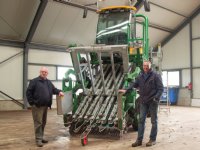 13-01-2015 - Boomkwekerij Kloosterhuis in Winschoten heeft een nieuwe rooimachine laten maken in Zwitserland. De machine kan vier rijen tegelijk rooien en het product bundelen.