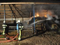 07-10-2014 - Bij een loonbedrijf in Persingen, gemeente Ubbergen, is gisteravond brand uitgebroken. De brand woedde in een loods met daarin landbouwmachines en hooi.