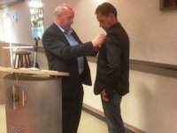 13-06-2014 - Adjan Vos heeft na veertien jaar afscheid genomen als voorzitter van LTO Noord IJsselmonde. Voorzitter Arie Verhorst van LTO Zuid-Holland reikte gisteravond de zilveren LTO Noord-speld aan...