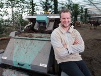 05-09-2015 - Chris Bomers in Groenlo heeft een jaar ervaring met de koeientuin. Dat is een vrijloopstal met mestrobot, bomen en een serrestal als overkapping. Het verwijderen van de mest van de vloer...