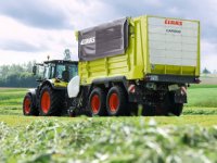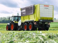 07-10-2019 - Claas rust de Cargos 9000 en 8000 uit met Tim Speed Control. Deze nieuwe functie regelt de snelheid van de trekker afhankelijk van de doorvoer door de pick-up van de opraapwagen.