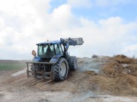 10-04-2017 - Met een voorlader op de trekker mengt bollenteler Cock Hulsebosch de componenten voor zijn composthoop.