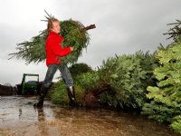 04-01-2018 - Melkveehouder Pieter Koonstra uit Vinkenbuurt bij Ommen zamelt deze week kerstbomen in. Hij versnippert ze zaterdag en gebruikt de snippers voor zijn compostbodem in de vrijloop-serrestal.