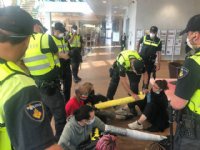 21-09-2020 - De politie heeft de actievoerders van Animal Rebellion zojuist een voor een gearresteerd en de bezetting van het ZLTO-kantoor in Den Bosch beëindigd. Sommige actievoerders waren aan elkaar...