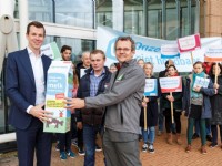 Milieudefensie deelt bij Ahold duurzame melk uit