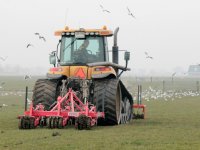 18-03-2014 - Loonbedrijf Klaas Fekkes in het Friese Marrum investeerde fors in een graslandbeluchter met drie messen, die tot 47 centimeter de grond in gaan.