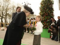 04-04-2012 - Koningin Beatrix opende vanmiddag Floriade 2012 in Venlo. Dat deed ze door een tulp aan een kleurrijk Nederlands boeket toe te voegen.