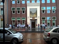 24-09-2014 - Friese boeren hebben vanmorgen actie gevoerd bij het provinciehuis in Leeuwarden tegen het Friese ganzenbeleid.