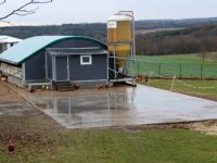18-01-2019 - Op melkveebedrijf Schönfelder Hof in Ziertheim-Reistingen, in Zuid-Duitsland, staan twee verplaatsbare kippenschuren voor 1.600 legkippen. Bij het uitmesten wordt de stal met een trekker...