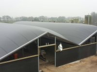 17-03-2016 - De nieuwe kalverstal voor zeshonderd rosé kalveren van familie Fluitman in Radewijk krijgt een luchtkussen als dak. Het dak is lichtdoorlatend. 'De stal is licht zonder dat hij opwarmt',...