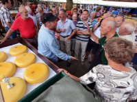 11-06-2014 - De eerste 150 kilo wegende graskaas leverde tijdens de traditionele Woerdense kaasveiling van het jaar een recordbedrag van 19.600 euro op.