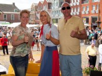 03-07-2013 - Het grootste bronzen standbeeld van alle Nederlandse kaassteden staat in Edam. Vanochtend bij de start van de jaarlijkse kaasmarkt werd het beeld onthuld door burgemeester Willem van Beek...