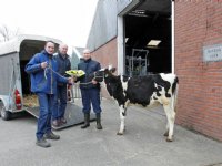 19-03-2013 - Het kalf Koepon Poseidon Regenia 112 (v. Winterlance ALTAPoseidon) dat op de Groninger Rundvee Show (GRS) werd verloot is onlangs naar de winnaar Hans Verdam in Feerwerd gegaan.
