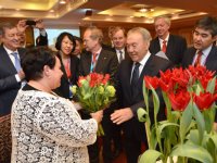 24-03-2014 - President Nursultan Nazarbayev van Kazachstan heeft gisteren een nieuwe tulp aangeboden gekregen uit handen van staatssecretaris Sharon Dijksma van Economische Zaken.