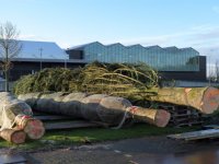 04-01-2018 - Melkveehouder Pieter Koonstra uit Vinkenbuurt bij Ommen zamelt deze week kerstbomen in. Hij versnippert ze zaterdag en gebruikt de snippers voor zijn compostbodem in de vrijloop-serrestal.