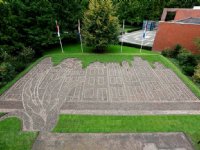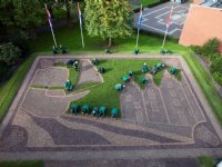 08-10-2015 - Tuinmannen van de Keukenhof in Lisse hebben donderdag de eerste bollen geplant voor een spectaculair bloemenmozaïek. Het is de start van het planten van 7 miljoen bloembollen voor komend...