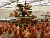 03-08-2016 - Pluimveehouder Dick Verbeek heeft in zijn Rondeelstal in Vaassen een kunstmatige boom gebouwd waar de kippen in kunnen vliegen.